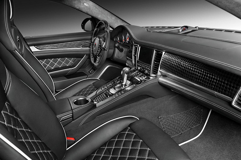 Русская фирма TopCar, создающая индивидуальный тюнинг для дорогих седанов, рассекретила информацию о Porsche Panamera Stingray. Вскоре широкой публике будут представлены три варианта этого четырехдверного суперкара. Первый из них, с черным матовым кузовом, блестящим передним спойлером, блестящей передней юбкой, боковыми молдингами и задним диффузором – Black Edition. Второй носит название White Edition, из которого ясно, что в основном будет преобладать белый цвет кузова, а некоторые элементы – задний спойлер, решетка радиатора на передней юбке, легкие кованые диски и задняя юбка будут черными, создавая приятный глазу контраст. Кожаный салон Panamera Stingray White Edition тоже будет белым. Ну а несколько кузовных элементов третьего, серого спортивного седана Carbon Grey Edition - передняя юбка, передний спойлер, капот, оконные накладки, задний диффузор и задние крылья кузова будут выполнены из карбона.