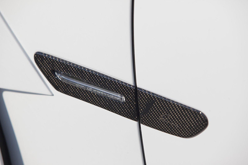 Для придания новизны и индивидуальности использовались карбоновые накладки на зеркала, решетку радиатора, дверные ручки, крышку багажника, А- B- и С-стойки и брызговики.