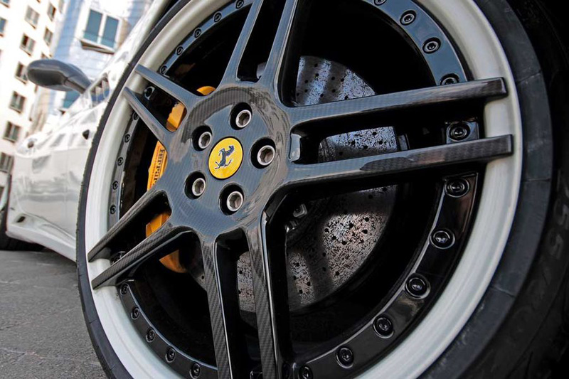 Внешний вид спортивного Феррари подвергся стильной индивидуализации: передний спойлер, пороги, задний диффузор, накладка на заднюю юбку, новый капот, жабры, задняя губа из карбона – всё выбрано с тонким чувством вкуса. Тонировка стекол и задних фар создает приятный дополнительный эффект.