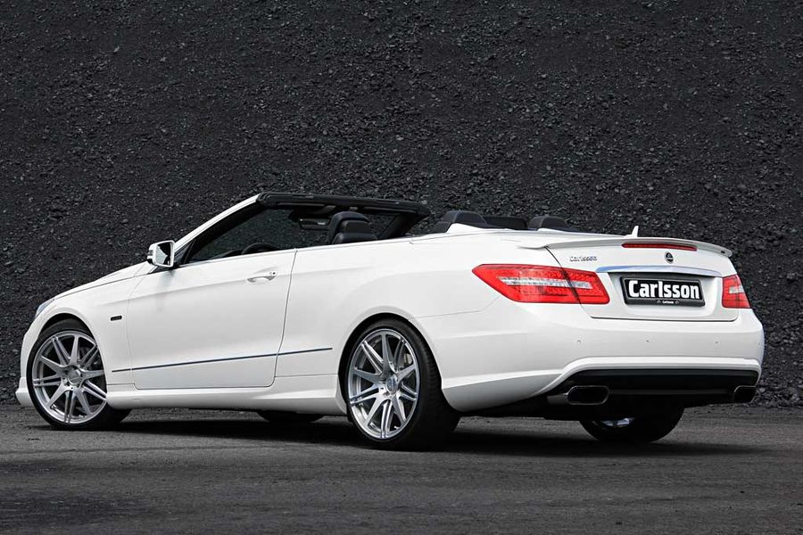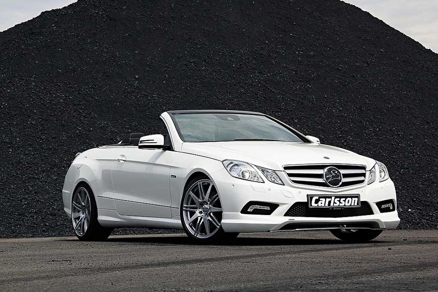 Мастера тюнинг-ателье Carlsson из немецкого Мерцига добавили новому четырехместному Мерседесу Е-класса дополнительную порцию спортивности. Уже сам по себе этот кабриолет заставляет сердца автолюбителей биться быстрее, учитывая столь теплое лето 2010. Основным новшеством, внесенным в конструкцию этого белого джентльмена, является дополнительный блок управления дизельным двигателем C-Tronic® CD35 REVO, позволивший увеличить резерв мощности более чем на 20% - с 231 л.с. (170 кВт) до 280 л.с. (206 кВт). Максимальный крутящий момент возрос при этом с 540 Нм до 648 Нм. Блок управления двигателем для мотора CDI 350, установленный так, что его можно при необходимости снова демонтировать, обойдется европейскому клиенту вместе со всеми монтажными материалами и крепежом всего в 1748 евро. Надлежащий спортивный звук издает задняя часть выхлопной системы размером 225х90 мм, выполненная из стали, с парой выхлопных трубок, имеющих сдвоенные стенки. Стоимость выхлопной трубы - 2319 евро.
