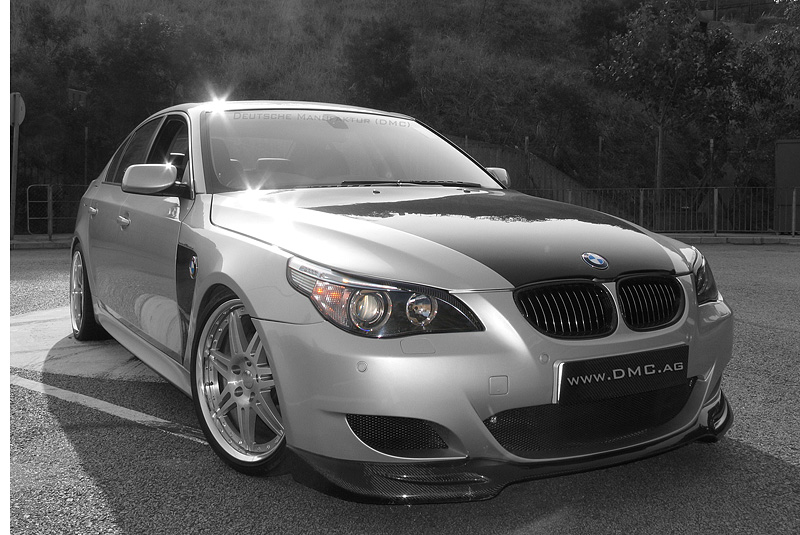 Мощность 730 л.с., максимальное количество оборотов 700 Нм и максимальная скорость 360 км/ч – это характеристики двигателя BMW 5 E60 "Melange" после чип-тюнинга в компании Deutsche Manufaktur. Под капотом BMW пятого поколения спрятан десятицилиндровый мотор в двумя компрессорами. Производитель обещает, что с помощью него седан с места за 4,2 секунды разгонится до 100 км/ч. Капот, крылья кузова, боковые пороги, крышка багажника и задний диффузор выполнены из легкого углеволокна, что так же способствует улучшению соотношения массы и мощности 5-го BMW. Хороший контакт с дорогой обеспечат широкие покрышки. Ширина дисков на передней оси составляет 10 дюймов, диаметр кованых дисков – 21 дюйм. Ширина дисков на задней оси еще шире – 12 дюймов. Не обошли стороной мастера и тюнинг салона, там тоже использовался карбон в комбинации с сиденьями, обтянутыми кожей «под страуса». Цену на всё это Deutsche Manufaktur Com еще не озвучила.