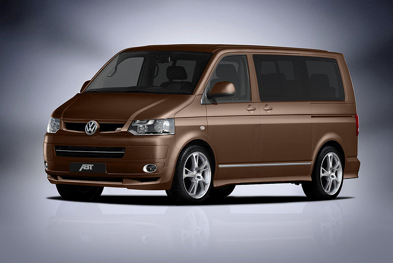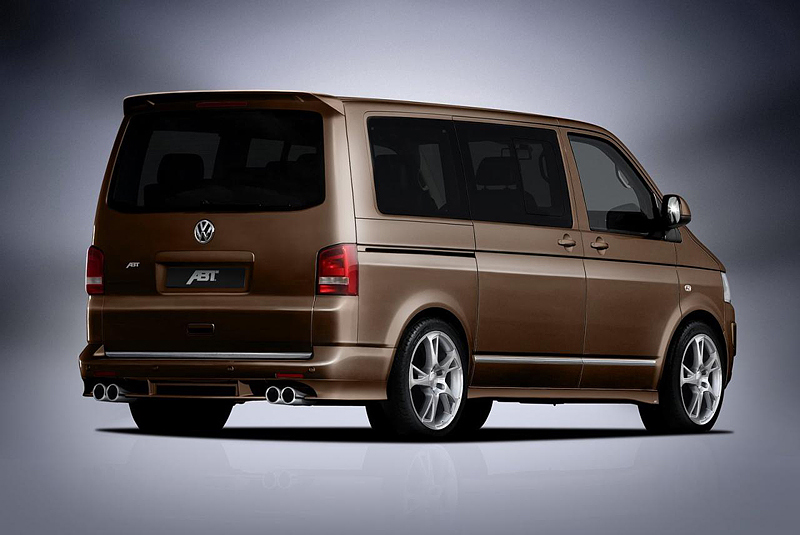 Немецкая фирма Abt превратила новый T5 в настоящий спортивный автомобиль. Полный внешний тюнинг, спортивная выхлопная система и легкосплавные диски для минивэна уже готовы, да и повышение мощности мотора уже не за горами – Abt работает в этом направлении.