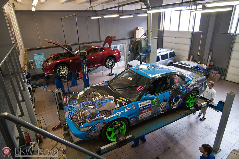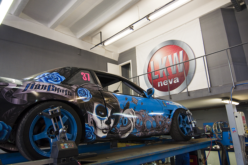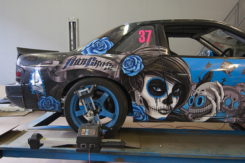 На боевом болиде Russian Drift Series был установлен правильный угол развала и схождение колес.