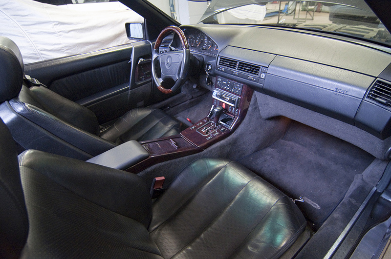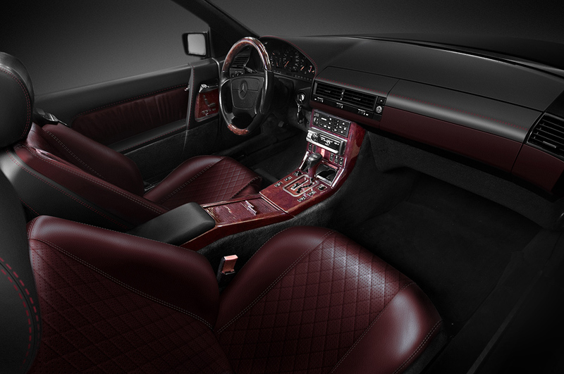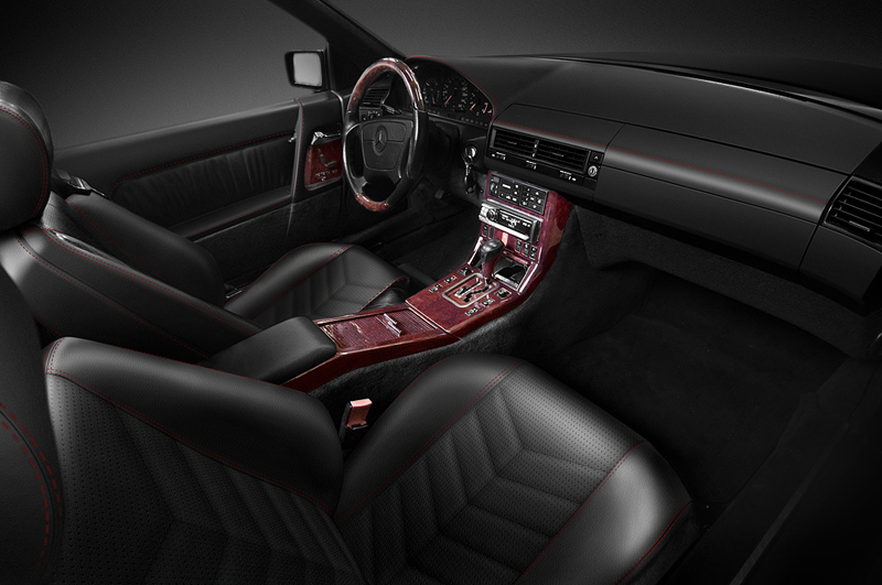 Для классического W129-го SL600 был придумано и визуализировано несколько вариантов перешива салона. Хозяину хотелось немного уйти от классики и аутентичности, но не переходить в кич. Для этого были выбраны тёмные приятные тона и невычурный дизайн сидений.
