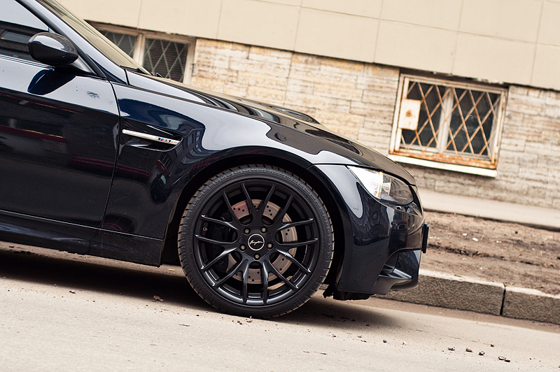 Диски - 50% вида машины. А как сказал Генри Форд: "Автомобиль может быть любого цвета, если он черный". Мы согласны с ним и добавили чёрные 19-ти дюймовые диски Breyton GTS, которые хорошо дополняют почти идеальный вид BMW M3 в кузове E92 Coupe.