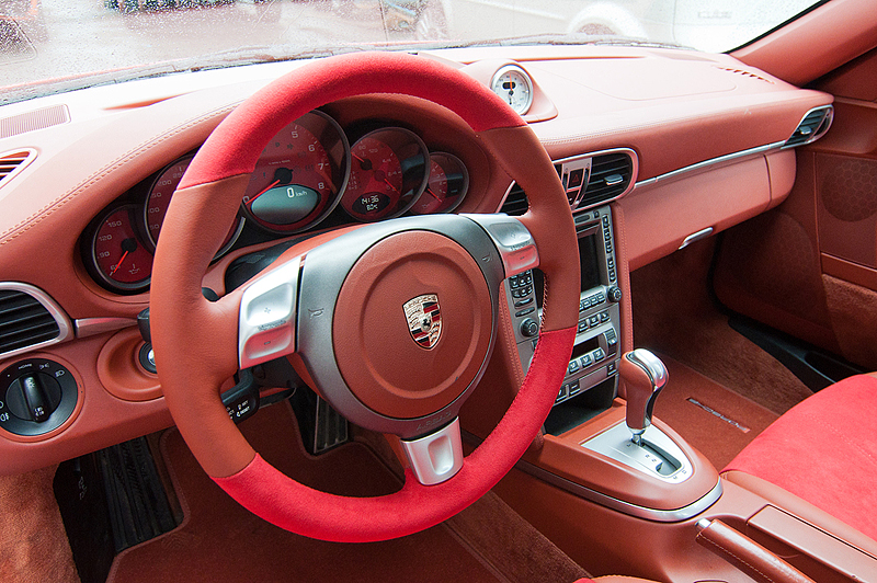 На автомобиле Porsche предпоследнего поколения был обновлен салон. В новую кожу были перешиты сиденья и руль. Сиденья сделали комбинированные - кожа + алькантара, которая была подобрана в цвет машины. На подголовниках были вышиты инициалы владельца. Кожа была выбрана из коллекции Porsche Nappa, немецкого производителя кож Hans Reinke. Также в автомобиль на пол положили новые коврики и обновили цвет дисков, теперь они красиво-красные и без следов использования на дорогах.
