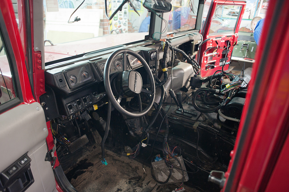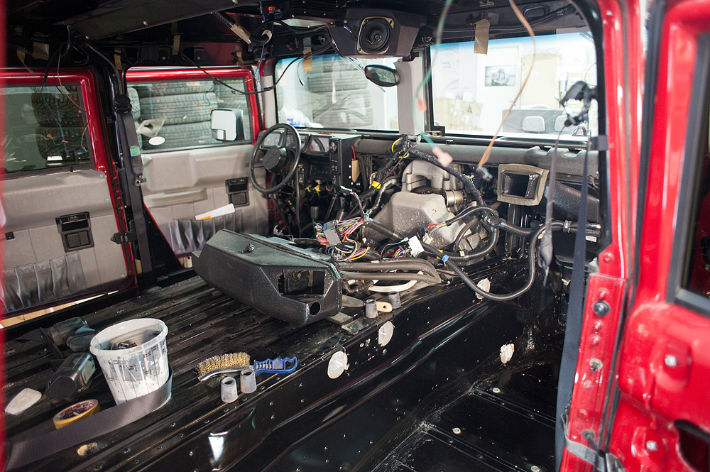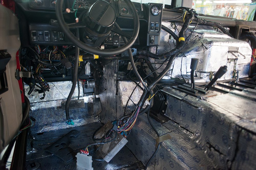 На красном Hummer H1 был полностью зашумоизолирован салон, багажник и потолок. Теперь передвигаться по трассе в машине стало заметно комфортнее.