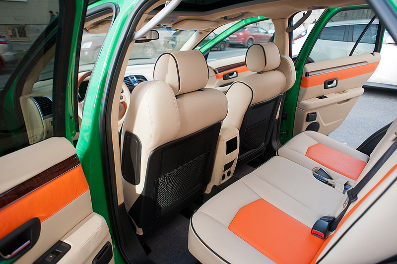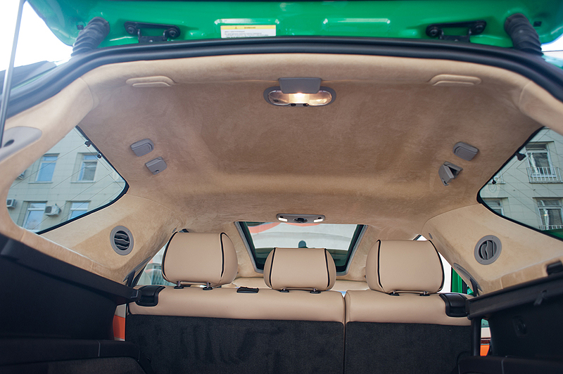 Было решено покрасить машину в зеленый цвет. Сделали 8 разных выкрасок, выбрали самый приятный оттенок зеленого, покрасили. Долго думали над цветом дисков, в итоге белый. Пока машина стояла в покраске начали делать салон. Изначально он было черный. Стал светлый с яркими деталями. Перешили сиденья, торпеду, дверные обшивки, потолок. Машина стала восприниматься совсем по другому. Приятнее, легче, мягче.
