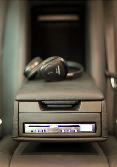 - телевизоры в задние подголовники, для чего изготовлены специальные подиумы, которые обтянуты кожей Mercedes-Benz.