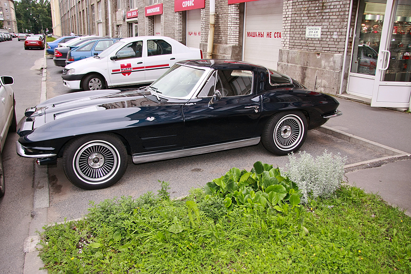 Знаменитый Corvette C2 Sting Ray («Электрический скат»). Он приезжал в сервис LKW-Neva для детальной настройки работы двигателя и устранения мелких неполадок.