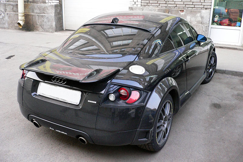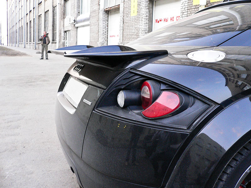 На Audi TT установлен новый передний бампер с большой решеткой в стиле последних моделей Audi, и расширители задних арок фирмы Hofele.