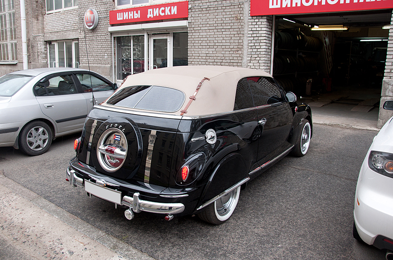 В автомобиле было изменено и переделано многое. Естественно сначала в глаза бросается эпатажный внешний вид: вручную по авторским рисункам были изготовлены передние крылья и решетка радиатора, задние крылья и крышка багажника. Нельзя не отметить большое количество хрома на автомобиле: зеркала, фара-искатель, перередний и задний бампера, молдинги по кругу, реснички, колпаки на диски. Много также изготавливалось по спецзаказу.