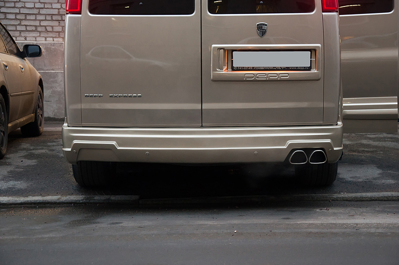 На автомобиле Chevrolet Express, который уже был глобально модернизирован московской фирмой DEPP, был изменен внешний обвес и проведены работы по устранению недоделок в салоне.