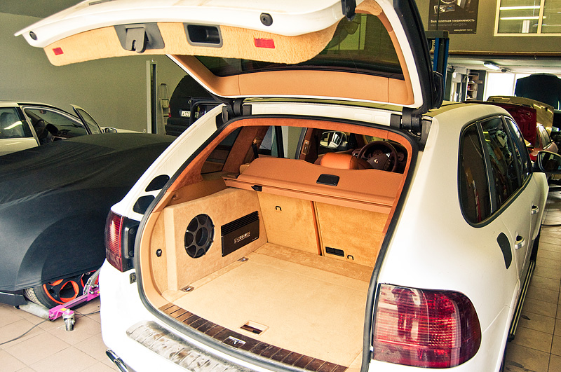 На автомобиле Porsche Cayenne был полностью перешит салон и багажник, поставлены новые диски. Также был слегка изменен в лучшую сторону внешний вид.