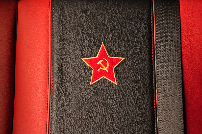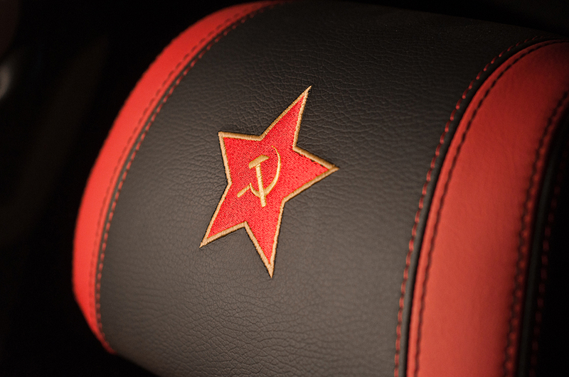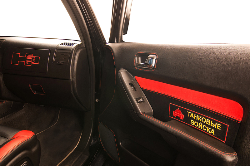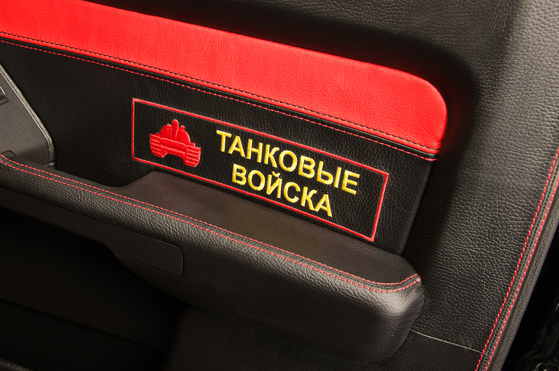 На потолке, дверях, подголовниках, заднем диване были вышиты звезды, герб гвардии, эмблема H3 и стилизованные военные нашивки.