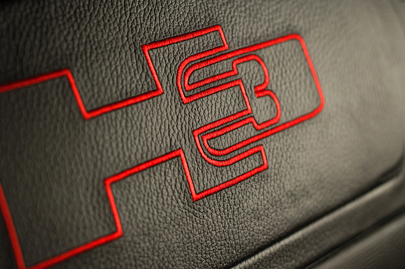 В автомобиле Hummer H3 было полностью перешит салон. Качественная кожа, вышивки, необычный дизайн сделали его отличным продолжением брутального внешнего вида машины.