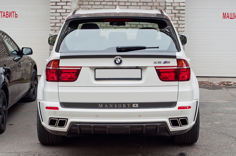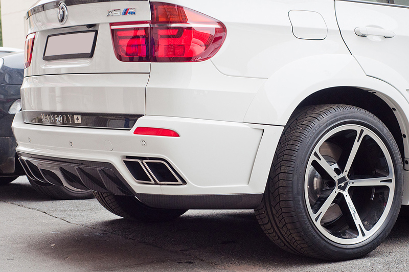 На новый BMW X5 M был установлен широкий обвес от известной на рынке тюнинга, швейцарской фирмы Mansory (http://www.mansory.com/). Обвес сразу и разительно выделил этот "икс" из потока одинаковых серых и черных BMW Х5 и Х6, которых не мало в нашем городе. Фирма Mansory давно специализируется на тюнинге автомобилей премиум-сегмента рынка. Мастера фирмы LKW-Neva покрасили и установили этот обвес быстро и качественно.