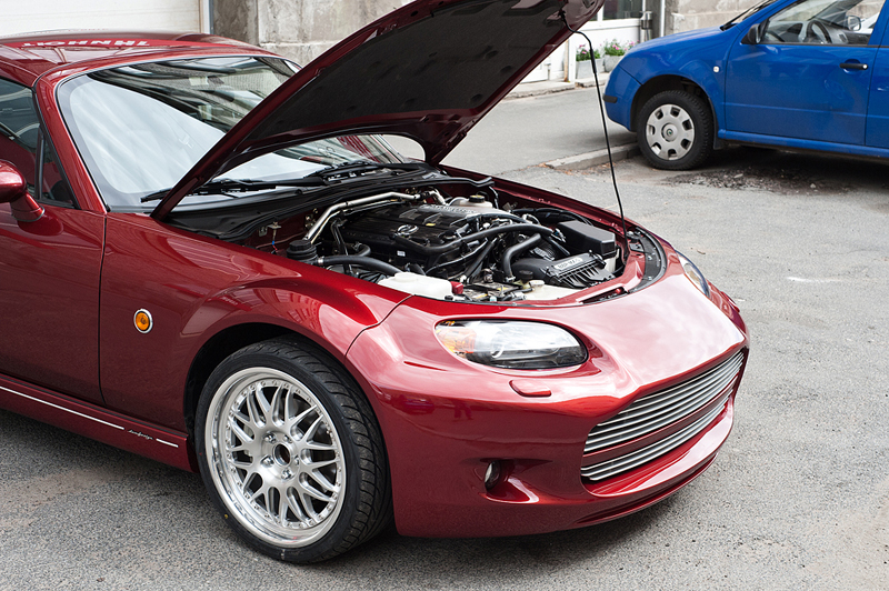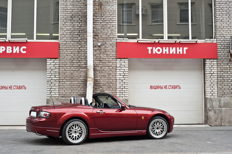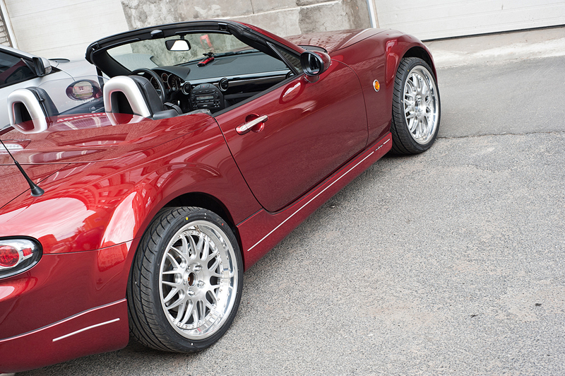 На автомобиль Mazda MX-5 был установлен аэродинамический обвес DAMD, компрессор BBR Cosworth, колесные диски HRE.