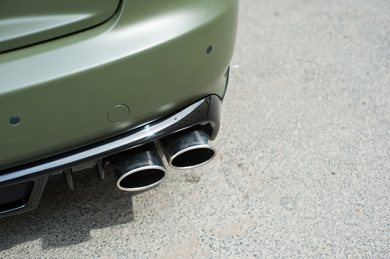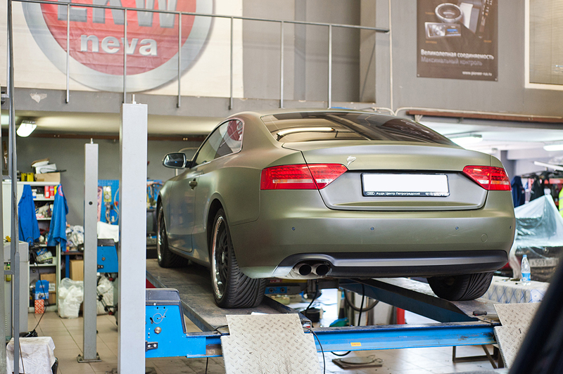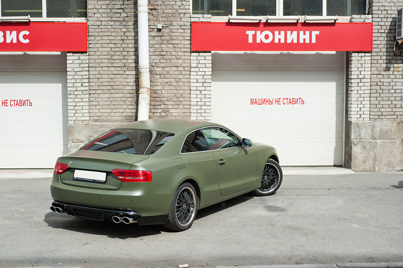 На Audi A5 2.0T была установлена выхлопная система и задняя юбка Rieger. Теперь выхлопные трубы выходят с двух сторон, по две трубы с каждой. Звук выхлопа стал намного приятнее и басовитее. И внешний вид стал заметно лучше.