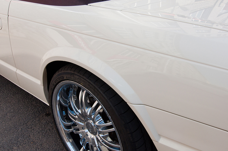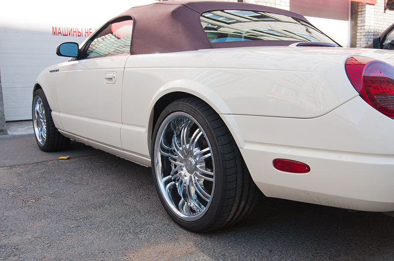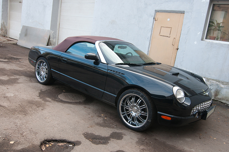 Ford Thunderbird одиннадцатого поколения был покрашен в светло-молочный цвет, были изготовлены задние расширители арок, настроена музыка.