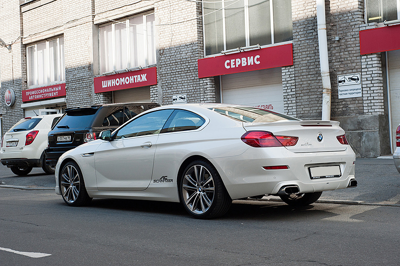 Для новой BMW 6er F14 купе был привезен, покрашен и установлен аэродинамический обвес фирмы AC-Schnitzer. Он состоит из передней юбки, решетки над юбкой, задней юбки, задней части выхлопной системы и спойлера на крышку багажника. В салон установлены накладки на педали и фирменные коврики. На бока были наклеены оригинальные наклейки AC-Schnitzer.