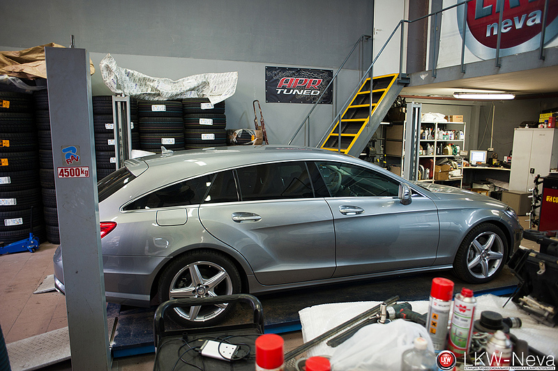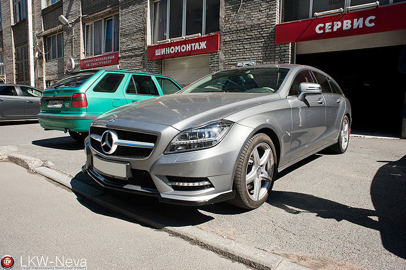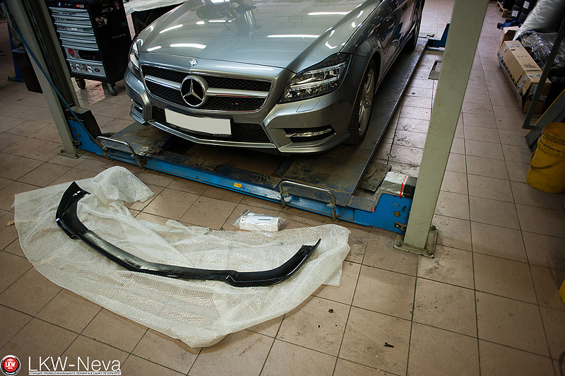 Для редкого в наших краях Mercedes-Benz CLS Shooting Brake был привезен из Германии из фирмы Brabus был привезен приятный подарок - передняя юбка. По приезду владельцем автомобиля было принято решение покрасить её не в цвет кузова, а в черный. Покрасили, поставили. Выглядит отлично!