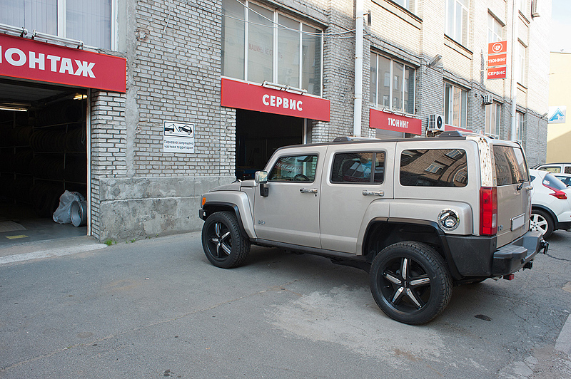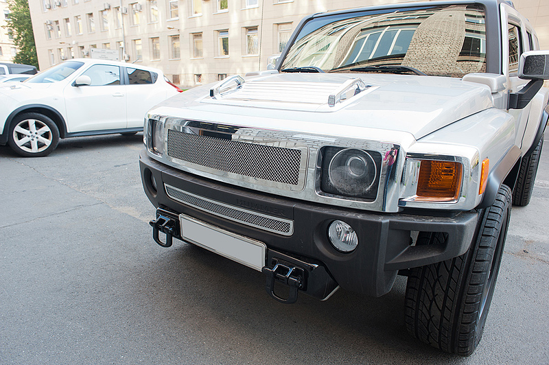 На Hummer H3 были установлены декоративные накладки на задние стойки, решетки на переднюю часть машины и небольшие расширители колесных арок.