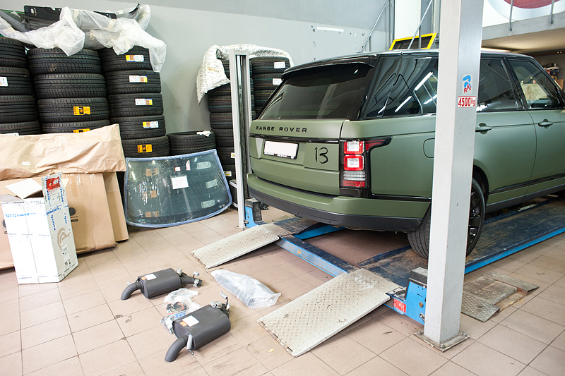 На Range Rover 5.0 superchargered 2013 привезли и установили выхлопную системы Startech с регулировкой громкости. Выхлоп состоит из задних банок с клапанами и средней части глушителя. Когда шайба КПП в режиме "D" глушитель работает в тихом режиме, если переключить в "S" - открываются клапаны и звук становится заметно громче с басовитее.