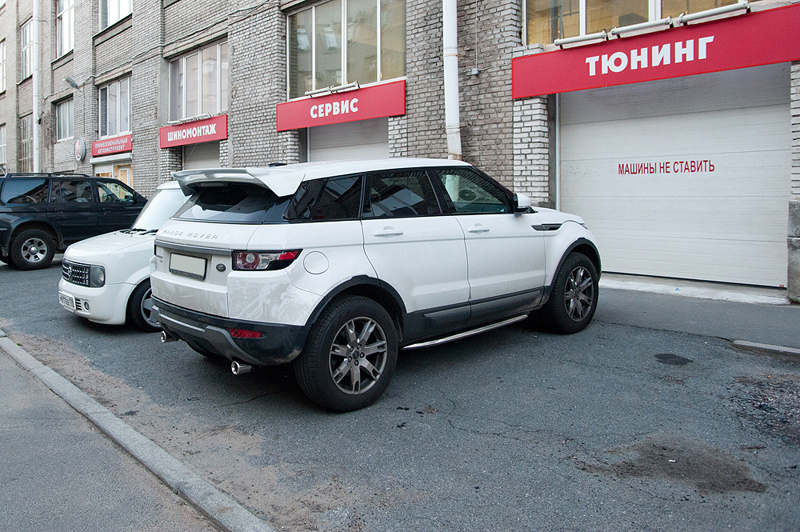 На Range Rover Evoque был установлен спойлер, пороги фирмы Startech, насадки на выхлопные трубы JOM и подставка для отдыха левой ноги в салоне. Это небольшой спектр того, что можно сделать с этим автомобилем. Существует несколько wide-body обвесов, и множество интересных деталей, которые прекрасно дополнят интересную внешность Evoque.