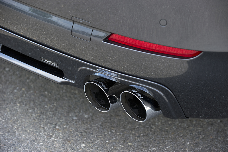 Помимо этого Hamann предлагает набор для снижения клиренса на 35 мм, 20-дюймовые колеса, светодиодные габаритные огни на передний бампер и выхлопную систему из нержавеющей стали с четырьмя патрубками для 550i.