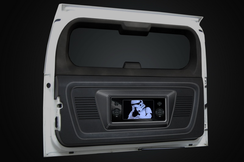 Проект интерьера белоснежного Hummer было решено создать в стиле киноэпопеи "Звездные войны". Идея заключалась в том, что снаружи автомобиль стал практически полностью белым, за исключением редких деталей. Брутальная внешность и белый цвет напомнили о штурмовиках - героях из фильма, которые носили полностью белые доспехи вместе с белым шлемом, однако все внутри у них было черное, ведь герои отрицательные. Поэтому после белой внешности, решили предложить черный салон, но с космическими нотками.
